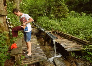 Umywalnia na bazie namiotowej w Lopience. Bieszczady z jaktoblisko.com