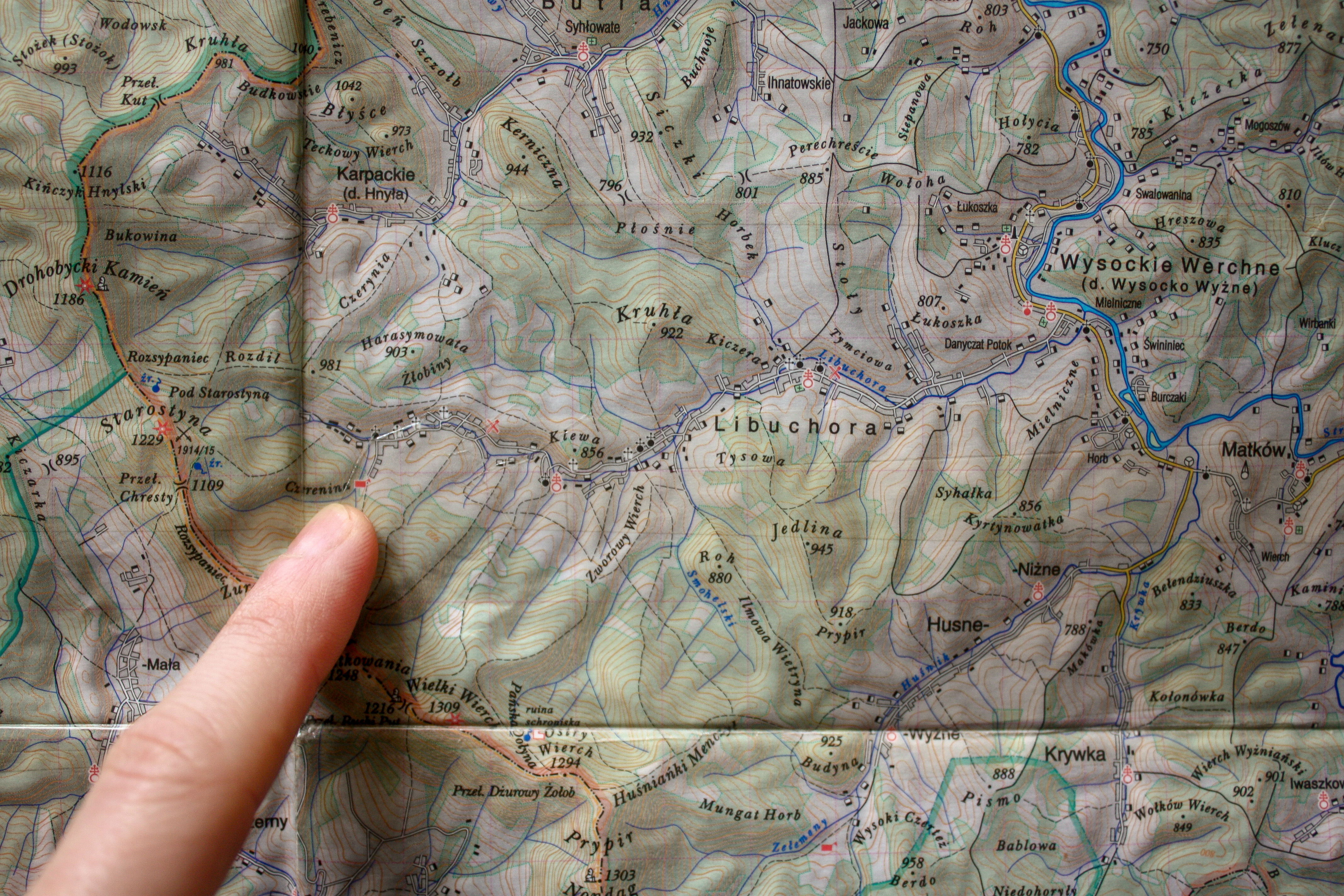 Palcem zaznaczona turbaza w Libuchorze – W. Krukar – Bieszczady wschodnie, mapa 2007, Wydawnictwo Ruthenus