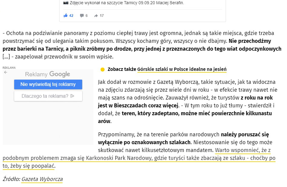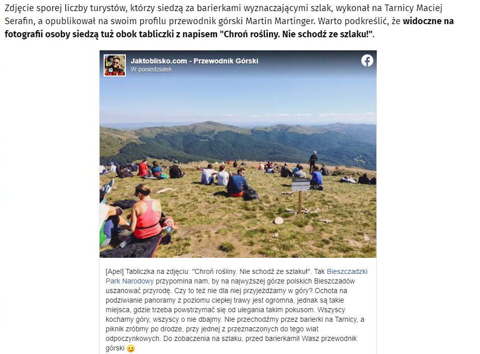 Wszystko zaczęło się od mojego Facebooka, gdzie opublikowałem parę słów do turystów, którzy przechodzą przez barierki znajdujące się na szczycie najwyższej góry polskich Bieszczadów i oddają się biwakowaniu. Poniżej możecie przeczytać mój apel oraz artykuł który ukazał się w portalu onet.pl. Jeśli kilka moich słów sprawi, że choć jedna osoba zrezygnuje z wylegiwania się na Tarnicy, to było warto!