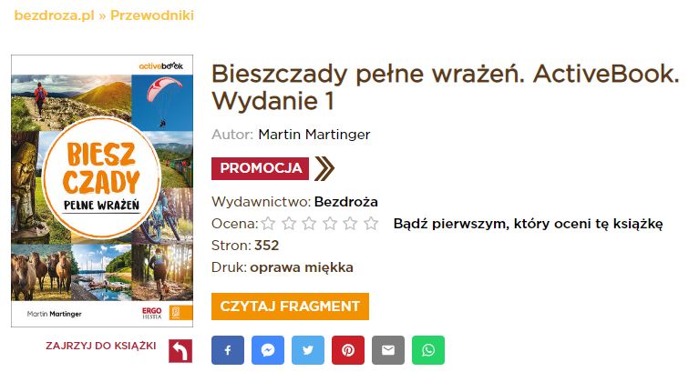 Po cichu przypomnę, że w czerwcu 2022 r. ukazała się moja pierwsza książka pt. Bieszczady pełne wrażeń. Opisałem ją we wpisie, do którego odnośnik znajduje się tutaj. By przejść na stronę Wydawnictwa Bezdroża kliknij w poniższe zdjęcie.
