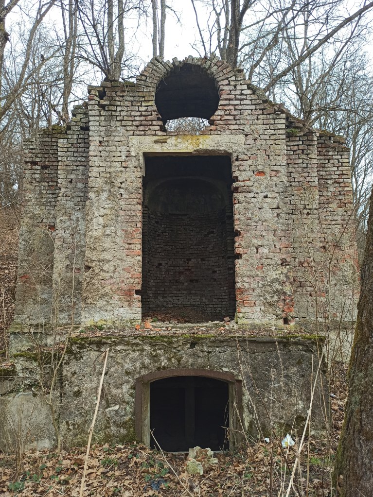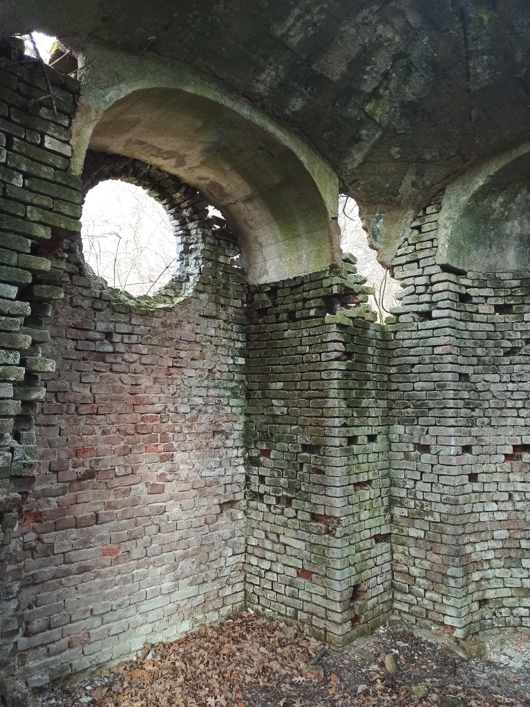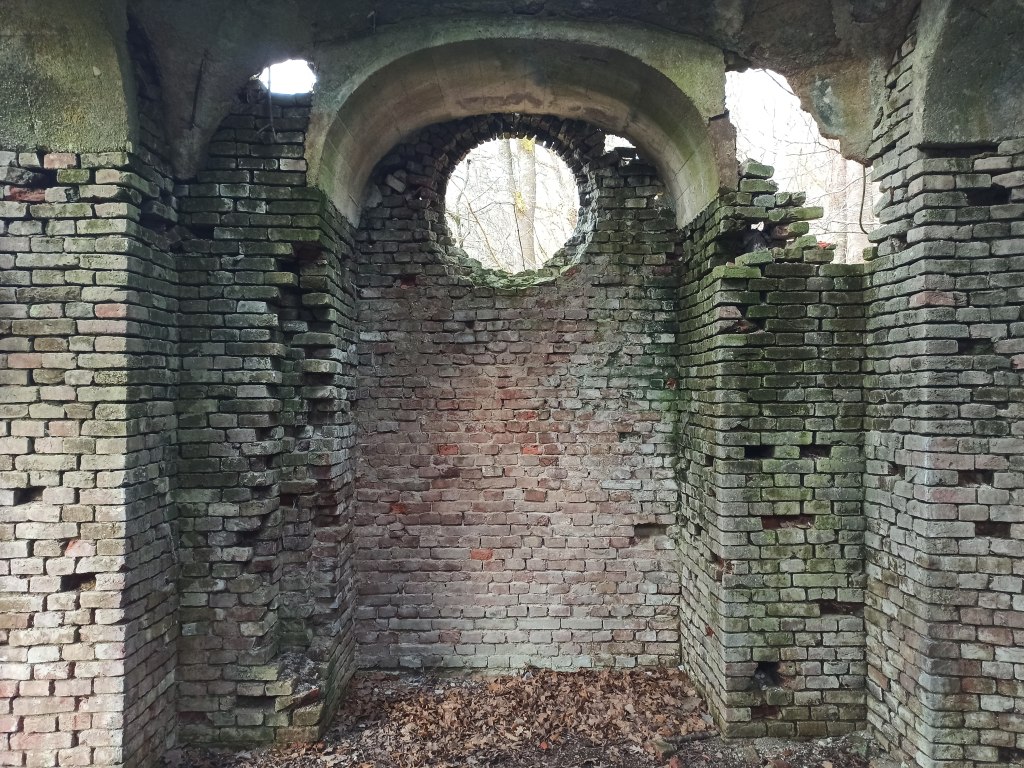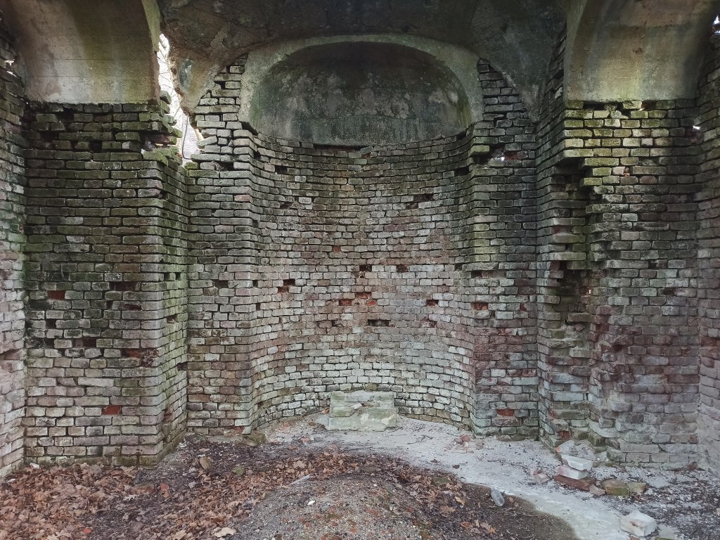 ścianami pokrytymi polichromiami znajdowały się szczątki zmarłych. Obecnie otoczenie kaplicy jest zalesione i niełatwe do odnalezienia.