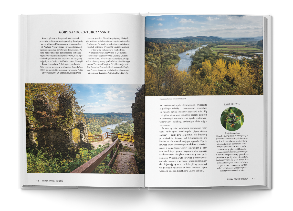 Książka trafi w oczekiwania każdego pasjonata przyrody i historii – również tego wytrawnego, znającego Bieszczady od podszewki. Zakres geograficzny wykracza tu poza formalne granice pasma, ujmując je łącznie z przyległymi obszarami Beskidu Niskiego i Gór Sanocko-Turczańskich. Autor w ten sposób wychodzi naprzeciw turystycznemu zapotrzebowaniu na doświadczenie dzikości tej części Karpat, którą popularnie łączy się często pod wspólnym szyldem: Bieszczady.