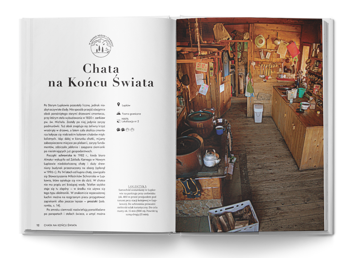 100 nieznanych miejsc, które podzieliłem na 5 kategorii: Z widokiem w dal. Nad górskim potokiem. Ruiny z historią. Ślady dawnych mieszkańców oraz W krainie roślin i zwierząt.